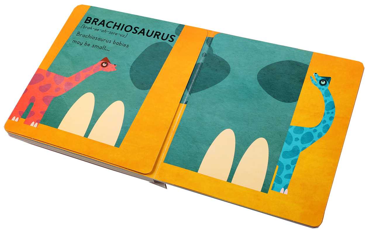 Velociraptors stare each other down. T. rex snaps its gigantic jaws. And Brachiosaurus is so big it can’t even fit on the page! Find your favorite dinosaur in this fun, interactive board book packed with tabs to lift, foldouts, and a chomping die-cut mouth on the cover!