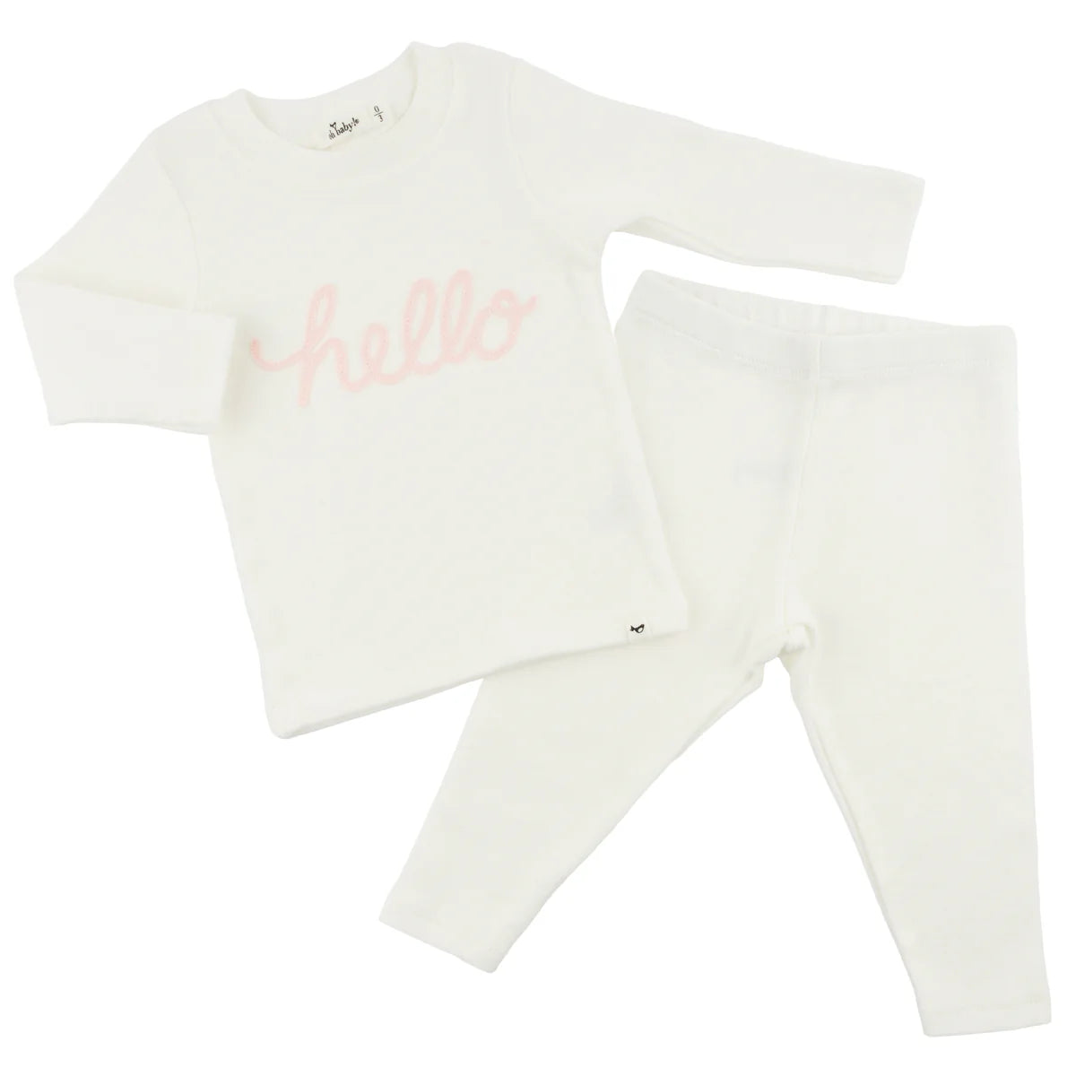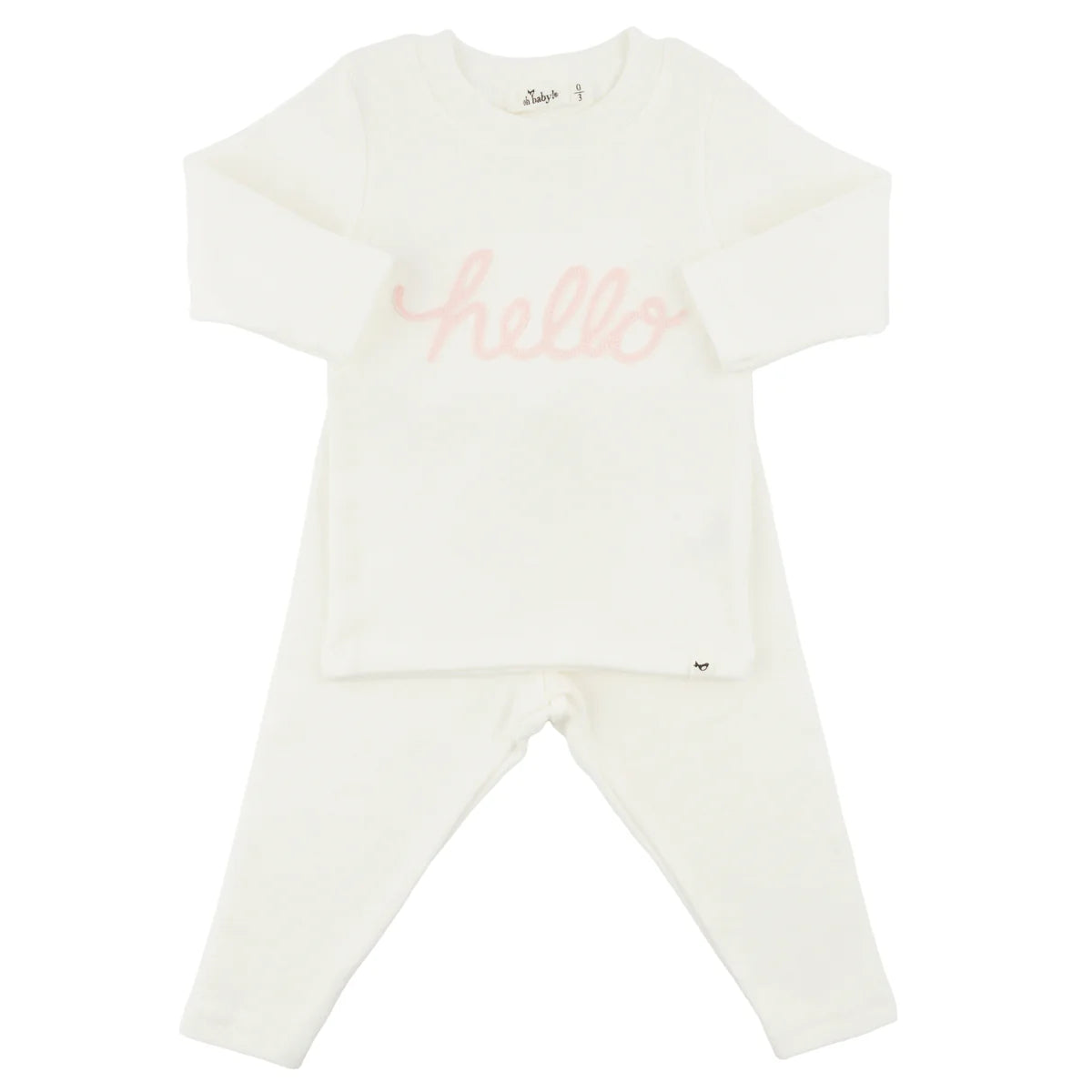 Oh Baby Two Piece Set "Hello" Pink Embroidered Cream