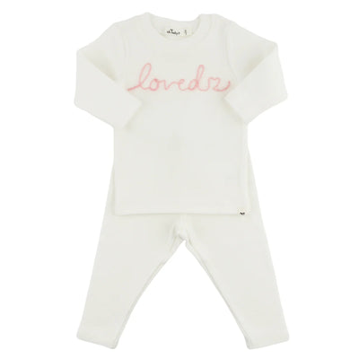 Regular price $ 60.00 Save $ -60.00This oh baby! Two Piece Set in Cream is adorned with sweet pink "loved with heart" embroidery, making it ideal for your baby’s snug and adorable days. Sized just right for infants and thoughtfully designed in Minnesota.