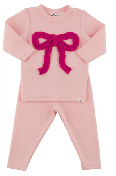 Oh Baby Hot Pink Ruffle Bow Baby Rib 2 Piece Set