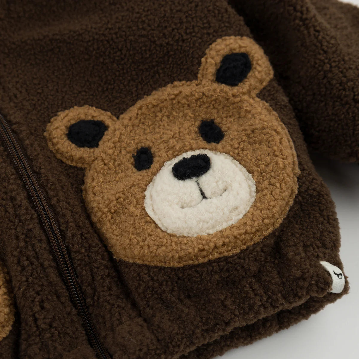 Oh Baby Bear Faces Sherpa Tahoe Jacket in Chestnut